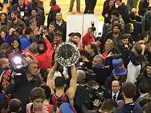 San Lorenzo players celebrating the 2015–16 season LNB title.