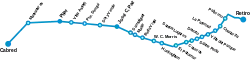 The San Martín line is a 70-kilometre (43 mi), 22-station commuter rail service in the metropolitan area of Buenos Aires, Argentina. The San Martín line operates from the city-centre terminus of Retiro north-west to Doctor Cabred in Luján Partido[2] along a broad gauge line built by the British-owned Buenos Aires and Pacific Railway.
