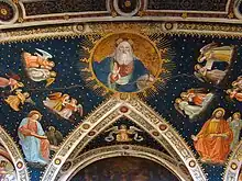 On the vault of the hall of the nuns is depicted a starry sky, with God, the Evangelists, and angels. In the end, there is the painting Ecce Homo.