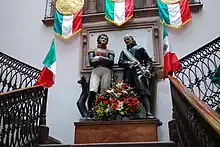 The prominence of the city declined at the beginning of the 19th century, mostly due to the Mexican War of Independence. However, it played an important early role in this conflict. It is the birthplace of two significant figures of the war, Juan Aldama and Ignacio Allende. Both were involved in a conspiracy against the colonial government in Mexico City, along with Miguel Hidalgo y Costilla and Josefa Ortiz de Domínguez. When this conspiracy was discovered, the warning to Hidalgo and Allende passed through this town and onto Dolores (Hidalgo), just to the north. This prompted Hidalgo's "Grito de Dolores" assembling the insurgent army on 15 and 16 September 1810. The new insurgent army first came to San Miguel, stopping at a religious sanctuary in Atotonilco just outside. Hidalgo took a standard bearing an image of the Virgin of Guadalupe from here;[6] this standard is now in the Museo del Ejercito in Spain.[15] Then the army entered San Miguel proper, to name officers and to free prisoners in the local jail.[6][9] San Miguel was the first Mexican town to gain its independence from Spain.[10]: 4