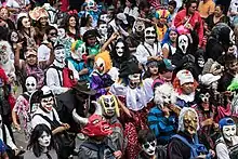 Holy Week begins with an exhibition of altars dedicated to the Virgin of Sorrows and end with the Procession of Silence.[38] Prior to the Procession of Silence, there is a reenactment of the judgment of Jesus by Pontius Pilate, on one side of the San Miguel Parish. Then the procession begins, which represents the fourteen scenes of the Passion before his crucifixion. Many of the townspeople participate in the event, with children dressed as angels and adults in period clothing carrying statues of Jesus. The procession winds its way along the main streets of the historic center completely in silence.[47] Another large religious celebration is the feast of Nuestro Señor de la Columna.[48]