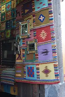 Another important market is the Mercado de Artesanias, which sells a wide variety of items such as those made from wool, brass, paper mache and blown glass, tin and silver. One figure that features prominently on merchandise is that of a frog, as the state's name of Guanajuato means "place of frogs". The market is located in a narrow alley filling three blocks behind the city's main fruit and vegetable market. The merchandise here is more authentic and cheaper than that found around the main square.[33][34][36]