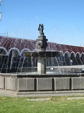San Miguel Arcángel Fountain is installed in Cholula, Puebla's Plaza de la Concordia, in Mexico. The fountain was gifted by Philip II of Spain in 1554.[1]