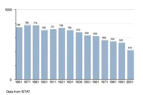 - ↑ "Popolazione Residente al 1° Gennaio 2018". Italian National Institute of Statistics. Retrieved 16 March 2019.