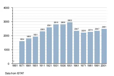 - ↑ "Popolazione Residente al 1° Gennaio 2018". Italian National Institute of Statistics. Retrieved 16 March 2019.