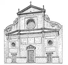 Mariano Armellini, who claims that San Trifone was demolished in the sixteenth century with the initial construction of the Convent of Sant'Agostino, says that the church's status as a cardinal's church was transferred to San Salvatore in Primicerio, which retained it until 1566, at which time it was transferred to Sant'Agostino.[4]