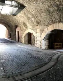 Tibur was located at the head of the Aniene valley where the river falls 160 m into the Roman countryside and which was a pass on the main route for trade and human travel between the Apennine plateaux of Abruzzo and Apulia, rich in cattle, and the fertile Roman Campagna.[5] Aided by fortifications on the surrounding ridges the pass determined the function and prosperity of the city from the 9th century BC.[6]
