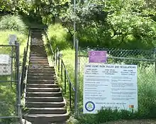 The stairs and warning sign at Sand Dune Park, Manhattan Beach, California