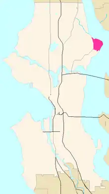 Sand Point is a neighborhood in Seattle, Washington, United States, named after and consisting mostly of the Sand Point peninsula that juts into Lake Washington, which is itself largely given over to Magnuson Park. Its southern boundary can be said to be N.E. 65th Street, beyond which are Windermere and Hawthorne Hills; its northern boundary, N.E. 95th Street, beyond which is Lake City. The western limit of the neighborhood, beyond which are View Ridge and Wedgwood, is not fixed and can be said to be anywhere up the hill that extends west from Sand Point Way N.E. as far as 35th Avenue N.E. It is also the former home of Seattle Naval Air Station.
