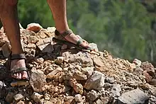 • Huarache, a Mexican sandal,[14] with sole made of a tire tread, or huarache (running shoe), a flat sandal used by minimalist runners.