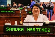 In 2021, she was launched as a candidate for deputy of Nuevas Ideas in La Libertad.[11][12] She joined as president of the Environment Commission on May 6, 2021,[13] on behalf of New Ideas in compliance with article 40 of the internal regulations of the Legislative Assembly of El Salvador.[14] She did not obtain enough votes to stand for re-election in the 2024 general election,[15] however, after Rebeca Santos' candidacy was canceled and Erick García resigned from the Legislative Assembly, Nuevas Ideas selected Martínez as one of its replacement candidates for La Libertad.[16]