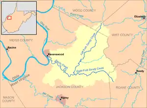 Sandy Creek is a tributary of the Ohio River in western West Virginia in the United States. Via the Ohio River, it is part of the watershed of the Mississippi River, draining an area of 124 square miles (320 km2)[5] on the unglaciated portion of the Allegheny Plateau. The creek is 22 miles (35 km) long, or 38.3 miles (61.6 km) including its Left Fork.[6]