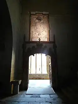 The gate which grants access to the temple is an excellent example of plateresque carving. It dates back to the first half of the 16th century and is decorated with medallions, vegetal motives and fantasy animals grouped in rectangular panels. It is carved in walnut wood.