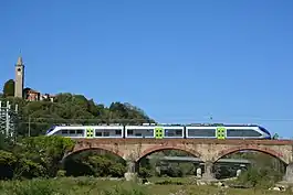 ![]() The railway bridge over the torrent Elvo. In transit an electric Minuet train | |||||||||||||||||||||||||||||||||||||||||||||||||||||||||||||||||||||||||||||||||||||||||||||||||||||||||||||||||||||||||||||||||||||