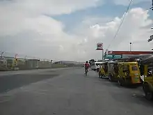 The main road in this barangay is Ninoy Aquino Avenue, a national secondary road which runs north–south connecting NAIA Road and Dr. Santos Avenue near the southern perimeter of Ninoy Aquino International Airport.[13] It is connected to the C-5 Road network via Multinational Avenue which runs along Ibayo Creek and to the South Luzon Expressway via Kaingin Road. This area in the southern edges of Santo Niño in close proximity to the main airport runway is home to several other freight and logistics businesses, as well as shanties along the creek which in 2010 was home to 150 informal settler families.[14] The main residential area is crossed by Col. De Leon Street in the west which runs parallel to and midway between the Ninoy Aquino Avenue and the Estero de Tripa de Gallina. Its main east–west corridor is Pascor Drive in the north which traverses the area that formerly housed the 11-hectare (27-acre) PAGCOR Casino Filipino Airport complex which closed down in 2014 and which was bought by SM Prime Holdings in 2018.[15] In the south, the village is crossed by J.P. Rizal Street which links the Ninoy Aquino Avenue to the bridge over the Tripa de Gallina to Don Galo. This street is home to the Santo Niño Parish Church and Santo Niño Barangay Hall, as well as the Ibayo Town Center. The C-5 South Link Expressway will run along its southern limits parallel to the existing C-5 Road.