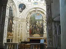The "Chapel of the Innocents" was commissioned around 1618 by the parish priest, Monsignor Varalli. It was built in Baroque style along the southern wall to the right of the entrance. It has an altarpiece depicting the Massacre of Innocents by Pasquale Ottino and a Martyrdom of 40 martyrs by Alessandro Turchi (L'Orbetto). There are also frescoes by Marcantonio Bassetti, and an Annuciation and frescoes of San Carlo and St Francis by Ottino.