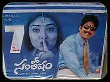Santosham (transl. Happiness) is a 2002 Indian Telugu-language comedy drama film directed by Dasaradh who co-wrote the film with Gopimohan and Trivikram Srinivas. It stars K. Viswanath, Nagarjuna Akkineni and Shriya Saran in lead roles, with Prabhu Deva playing supporting role. The music was composed by R. P. Patnaik.[1][2][3] The film won two Nandi Awards and two Filmfare Awards South.