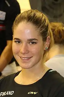 In 2014 she changed nationalities with the UCI to represent Finland. She represented her nation at the 2015 UCI Track Cycling World Championships.[2] She was born in Monterrey, Mexico to a Mexican father and a Finnish mother.[3] In 2018 she was selected for the European Championship Games in Glasgow.