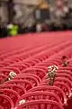 From the stage near the flame down the Maršal Tito Street, 11,541 empty red chairs were arranged in 825 rows (as an audience). This red “audience” stretched for 800 meters and ended in the area between the building of the Presidency of BiH and Ali-pasha’s Mosque. 11,541 empty chairs symbolized 11,541 victims of the war which, according to Research and Documentation Center were killed during the Siege of Sarajevo.[4][5] 643 of the chairs were small, representing the slain children. On some of them, during the day-long event, passers-by left teddy bears, little plastic cars, other toys or candy.[6]