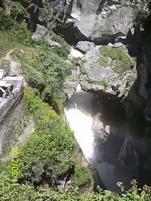 Saraswati River is a tributary of Alaknanda River flowing in Uttarakhand State, India.[1] It joins Alaknanda River at Keshav Prayag, near Mana village, Badrinath. The confluence of rivers Alaknanda and Bhagirathi at Devprayag in the state of Uttarakhand, forms and flows as river Ganga or The Ganges from the point forward.[2][3] A natural stone bridge, named "Bhim Pul",[4] lays across flowing Saraswati river, making a passage towards Vasudhara falls and Satopanth Lake. It is believed by locals that Bhim Pul is a rock bridge founded by Bhima of Mahabharatha, to help Draupadi to cross the rivulet.[5]