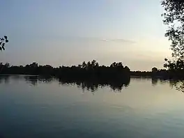 The lake is a flooded gravel-pit. In the surrounding area, there are several small lakes created by gravel quarrying.