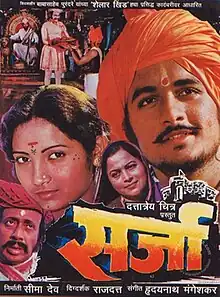 Sarja is a 1987 Indian Marathi-language film, based on a novel Shelar Khind by Marathi writer Babasaheb Purandare. It is directed by Rajdutt and produced by Dattatray Chitra. The film stars Ajinkya Deo, Pooja Pawar (debut), Seema Deo and Nilu Phule. It also features Kuldeep Pawar, Ramesh Deo and Ravindra Mahajani in key roles.[1] Sarja is a story of a young brave man and his wife, who assist Maratha Shivaji and his forces in capturing a fort from a Mughal Sardar.[2]