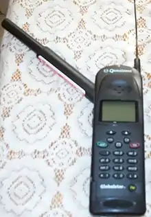The mobile equipment, also known as a terminal, varies widely. Early satellite phone handsets had a size and weight comparable to that of a late-1980s or early-1990s mobile phone, but usually with a large retractable antenna. More recent satellite phones are similar in size to a regular mobile phone while some prototype satellite phones have no distinguishable difference from an ordinary smartphone.[3][4]