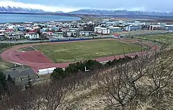 Sauðárkróksvöllur is an Icelandic open-air stadium that has a standing spectator capacity of about 2,500, but no permanent seating.[1] It opened in 2004, and has a grass surface.[2] It was built with a combination of public and private funding for the Icelandic Games held in the summer of 2004.[3] The stadium was also used for the 2004 and 2009 youth games, the 2006 and 2007 Icelandic Athletic championships and various other large or small events. Sauðárkróksvöllur is used by the local sports club, UMF Tindastóll, which helps maintain the pitch with the aid of volunteers.[4]