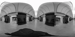 Construction on the station began in 2012.[6] At first, the city intended to use typical underground tunneling methods for the station, which is 65 meters (213 feet) underground. Project engineers suggested a new technology that would involve a single-vaulted design that is more commonly used for shallow stations constructed using cut-and-cover methods. This could reduce the construction time from 36 to 24 months.[7] The city originally expected the station to be ready by 2016.[8] This later was pushed to 2017 and, eventually, the beginning of 2019.[9][10] Because of the time and difficulty of building such deep stations, the Head of Construction for Moscow Marat Khusnullin said that this would be the last deep station built in Moscow.[11]