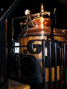 From a technical standpoint the Saxonia reflected in the main its English counterparts. Only a few details exist about the design of the boiler. The boiler barrel had rivetted longitudinal seams, the vertical boiler had a curved, cylindrical top. A flat plate on top of the vertical boiler provided a platform for the steam whistle and spring balance safety valve. On top of the front section of the boiler barrel was the tall, narrow steam dome. The grate was designed to be moveable.