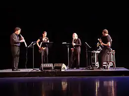 Saxophone quartets abound as amateur and professional ensembles as well as university-affiliated groups.[2] The most recent World Saxophone Congress, in 2015, hosted a competition specifically for saxophone quartets with a first prize of 4000 euros and a recital,[3] won by Keuris Saxophone Quartet.[4] Saxophone quartets also compete in, and have won, the Fischoff National Chamber Music Competition, which is the world's largest classical chamber music competition.