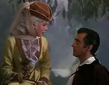 Granger, who performed most of his stunts himself, took fencing lessons with Jean Heremans when preparing for the role.[3] The 8-minute-long duel in the theater between Granger and Ferrer took eight weeks of preparation, including memorizing eighty-seven fencing passes.[3] Filming this scene left Granger with a wrenched knee, a damaged shoulder, and an injured back.[3] Other accidents on set included Jean Simmons – who was visiting her husband Granger – almost receiving a sword in her face, and a chandelier hitting a mattress upon which Granger was supposed to lie and embedding itself in the stage.[13][14] He insisted on seeing the chandelier dropped once before shooting the scene.[3]