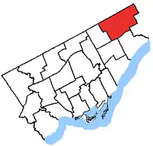 The riding covered the northeast part of the Scarborough part of Toronto. It stretched from Highway 401 in the south to Steeles Avenue in the north. In the east it ended at the border with Pickering and in the west at Midland north of Finch and Brimley south of Finch.