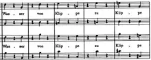 In an effort to elicit an effect of gasping for breath, Brahms inserts a hemiola over the lyric Wasser von Klippe zu Klippe geworfen. By alternating quarter notes with quarter rests, this section feels as though the meter has changed, essentially converting two bars of 3