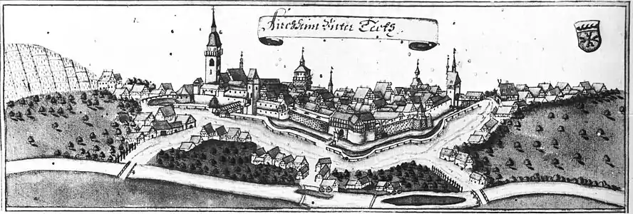 Kirchheim Castle about 1683, here seen at the center of the city wall