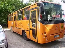 As in many other countries, in Ukraine, school buses are painted yellow or orange. In Ukrainian school buses are called "шкільний автобус" (Shkil'niy Avtobus).