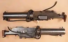 Until these synchronization problems had been overcome, it was not uncommon to see the Schwarzlose deployed in a removable forward firing Type-II VK gun container which had been developed by the Luftfahrtruppe's Versuchs Kompanie at Fischamend. The Type-II VK, which received the macabre nickname 'baby coffin' due to its shape, is remarkable in that it was possibly the first example of what today would be called a gun pod.[15] It was usually mounted on the centerline of the upper wing of Austro-Hungarian fighters and two-seat combat aircraft during the early phases of World War I and remained in use on two-seat combat aircraft until the end of the war. In its role as an aircraft weapon, the Schwarzlose was initially used unmodified — other than that the distinctive cone shaped flash-hider seen on most of the infantry weapons was removed. The Schwarzlose was further modified for aircraft use, much as the German Empire's own lMG 08 Spandau ordnance had been modified early in 1915, by cutting slots into the water jacket's sheetmetal to facilitate air cooling. In 1916, the water jacket was removed entirely, and the resulting weapon was re-designated as the Schwarzlose MG-16 and MG-16A when fitted with a stronger spring and a blowback enhancer to increase the gun's cyclic rate, which was eventually brought up to 880 rounds per minute in some versions of the MG-16A. As a defensive ring-mounted gun, the Schwarzlose usually retained its normal twin firing handles and trigger button, although some MG-16 aircraft guns were fitted with enlarged pistol-shaped handles and a handgun-style trigger. All ring-mounted defensive guns were equipped with specialized sights and a box for the ammunition belt, which allowed quick and trouble-free reloading. After the end of World War I, the Schwarzlose saw limited use as an aircraft gun with various East European air forces. The best-known post-war operator of the Schwarzlose was probably the Polish air force, who acquired and used significant numbers of surplus Austro-Hungarian aircraft and used them against Soviet forces during the Polish-Soviet War. The Schwarzlose was, however, quickly phased out of service as an aircraft weapon when more suitable equipment became available.[16]