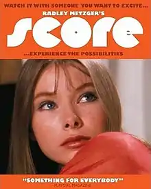 Score is a 1974 erotic romance film directed by Radley Metzger.[1][2] One of the first films to explore bisexual relationships,[3][4] it was part of the brief porn chic fad of the Golden Age of Porn in the early 1970s that also included Behind the Green Door, The Devil in Miss Jones and Deep Throat. The film was based on an off-Broadway stage play that ran for 23 performances at the Martinique Theatre from October 28, 1970 through November 15, 1971 and featured Sylvester Stallone in a brief role (as telephone repairman Mike).[5][3][6] The theatrical version of Score was written by Jerry Douglas, who later became a mainstream screenwriter. It was set in a shabby Queens tenement, while the film was set in an elegant, mythical land and sported a relatively high budget for an independent film of that era.