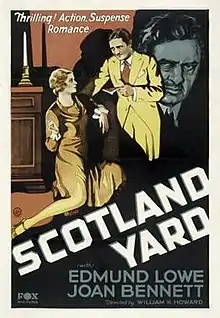 Scotland Yard is a 1930 American pre-Code crime film directed by William K. Howard, written by Garrett Fort, and starring Edmund Lowe, Joan Bennett, Donald Crisp, Georges Renavent, Lumsden Hare and David Torrence. It was released on October 19, 1930, by Fox Film Corporation.[1][2][3] It is based on the 1929 play Scotland Yard by Denison Clift. In 1941, the film was remade under the same title.