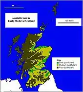 - ↑ Lyons, Anona May (cartographer) (2000), "Subsistence Potential of the Land", in McNeil, Peter G. B.; MacQueen, Hector L. (eds.), Atlas of Scottish History to 1707, Edinburgh: The Scottish Medievalists and Department of Geography, University of Edinburgh, p. 15, ISBN 978-0-9503904-1-3