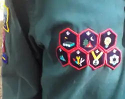 Continuing with tradition dating back to 1909 and in common with other sections in Scouting, Scouts earn badges that are sewn onto their uniform to recognise and represent achievements during their time in the troop.[7]