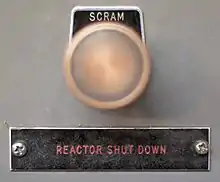A scram or SCRAM is an emergency shutdown of a nuclear reactor effected by immediately terminating the fission reaction. It is also the name that is given to the manually operated kill switch that initiates the shutdown. In commercial reactor operations, this type of shutdown is often referred to as a "scram" at boiling water reactors (BWR), a "reactor trip" at pressurized water reactors and at a CANDU reactor. In many cases, a scram is part of the routine shutdown procedure, which serves to test the emergency shutdown system.