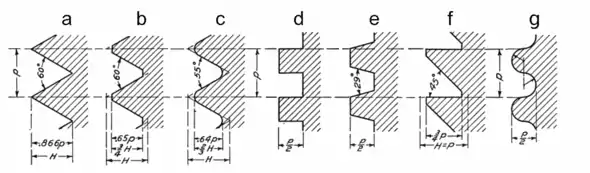 - (g) Buttress thread - This is used in high-load applications in which the load force is applied in only one direction, such as screw jacks.[5] With a 0° angle of the bearing surface it is as efficient as the square thread but stronger and easier to manufacture.