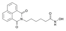 Scriptaid is a drug which acts as a histone deacetylase inhibitor, and was one of the first compounds discovered via high-throughput screening that acts at this target.[1] Scriptaid itself was never developed for medical applications, but led to the development of structurally related drugs such as vorinostat, which have been accepted into clinical use. Most early research using these compounds focused on their anti-cancer activity,[2] but more recent research has found scriptaid to be useful in other applications such as cloning and research into regulation of metabolism.[3][4][5][6]