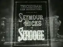 Scrooge is a 1935 British Christmas fantasy film directed by Henry Edwards and starring Seymour Hicks, Donald Calthrop and Robert Cochran. Hicks appears as Ebenezer Scrooge, the miser who hates Christmas. It was the first sound version of the Charles Dickens classic A Christmas Carol, not counting a 1928 short subject that now appears to be lost. Hicks had previously played the role of Scrooge on the stage more than 2000 times beginning in 1901, and again in a 1913 British silent film version.[1] This was the first film to be released by the Twickenham Film Distributors, Ltd., founded by Julius Hagen and Arthur Clavering. Hagen acted as producer for the new company, with Clavering handling film distribution.[2]