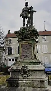 It was following a public subscription launched in 1900 that the monument was erected in 1908. The sculptural work on the pedestal was competed by L.Gallant of Saint-Mihiel and the bronze was completed by the foundry of A.Salin in Dammarie sur Saulx based on a model sculpted by Léon Vadel. The bronze was taken by the Germans during the 1914-1918 war and melted down for use in munitions manufacture. It was replaced in 1933. This time the foundry of Durenne in Val d'Osne were used but still based the bronze on Vadel's model. The 1900 monument had incidentally replaced one erected in 1836 on the occasion of the three hundredth anniversary of the completion of the Saint Mihiel "mise au tombeau" of which the people of Saint-Mihiel have always been fiercely proud.[39][40]