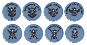 Sea Scouts currently may earn two seamanship knowledge and skill qualification recognitions: the "Qualified Seaman" and "Small Boat Handler" badges.