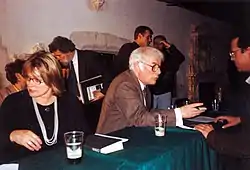 Heaney was awarded the Nobel Prize in Literature in 1995 for "works of lyrical beauty and ethical depth, which exalt everyday miracles and the living past".[44] He was on holiday in Greece with his wife when the news broke. Neither journalists nor his own children could reach him until he arrived at Dublin Airport two days later, although an Irish television camera traced him to Kalamata. Asked how he felt to have his name added to the Irish Nobel pantheon of W. B. Yeats, George Bernard Shaw and Samuel Beckett, Heaney responded: "It's like being a little foothill at the bottom of a mountain range. You hope you just live up to it. It's extraordinary."[45] He and his wife Marie were immediately taken from the airport to Áras an Uachtaráin for champagne with President Mary Robinson.[45] He would refer to the prize discreetly as "the N thing" in personal exchanges with others.[46]