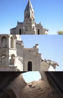 The conflict was characterised by the widespread use of combat drones, particularly by Azerbaijan,[157] as well as heavy artillery barrages, rocket attacks and trench warfare.[158] Throughout the campaign, Azerbaijan relied heavily on drone strikes against Armenian/Artsakh forces, inflicting heavy losses upon Armenian tanks, artillery, air defence systems and military personnel, although some Azerbaijani drones were shot down.[159][160] It also featured the deployment of cluster munitions, which are banned by the majority of the international community but not by Armenia or Azerbaijan.[161] Both Armenia[162] and Azerbaijan[163] used cluster munitions against civilian areas outside of the conflict zone.[164] A series of missile attacks on Ganja, Azerbaijan inflicted mass civilian casualties, as did artillery strikes on Stepanakert, Artsakh's capital.[165] Much of Stepanakert's population fled during the course of the fighting.[166] The conflict was accompanied by coordinated attempts to spread misleading content and disinformation via social media and the internet.[167]