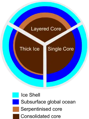 - ↑ Neumann, Wladimir; Kruse, Antonio (2019-08-30). "Differentiation of Enceladus and Retention of a Porous Core". The Astrophysical Journal. 882 (1): 47. Bibcode:2019ApJ...882...47N. doi:10.3847/1538-4357/ab2fcf. ISSN 1538-4357.